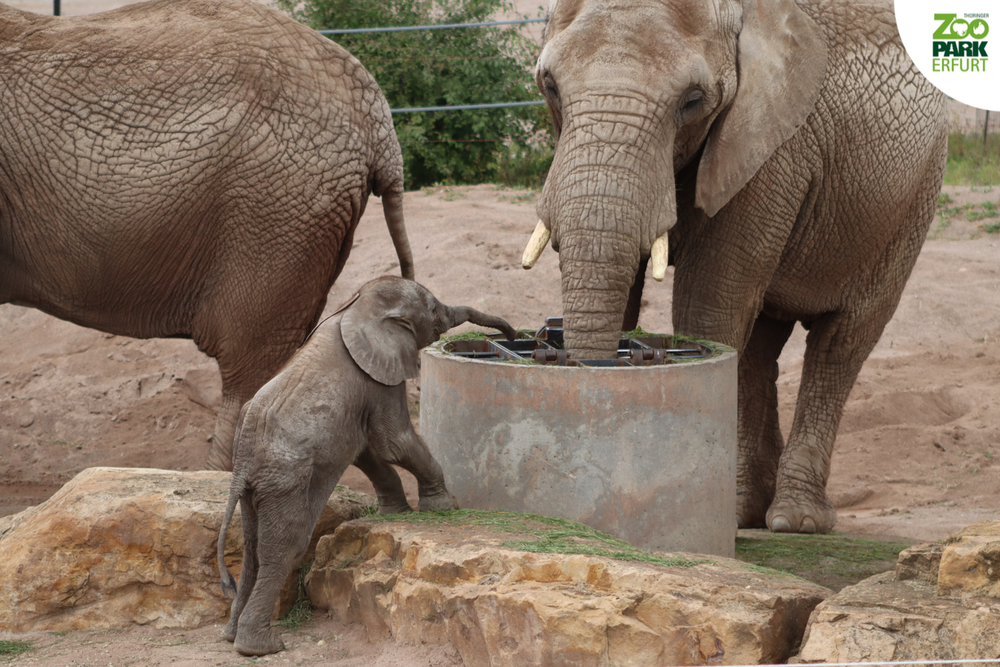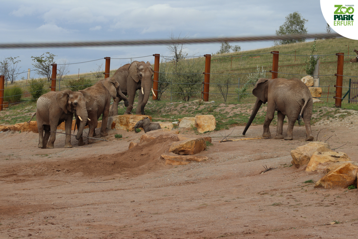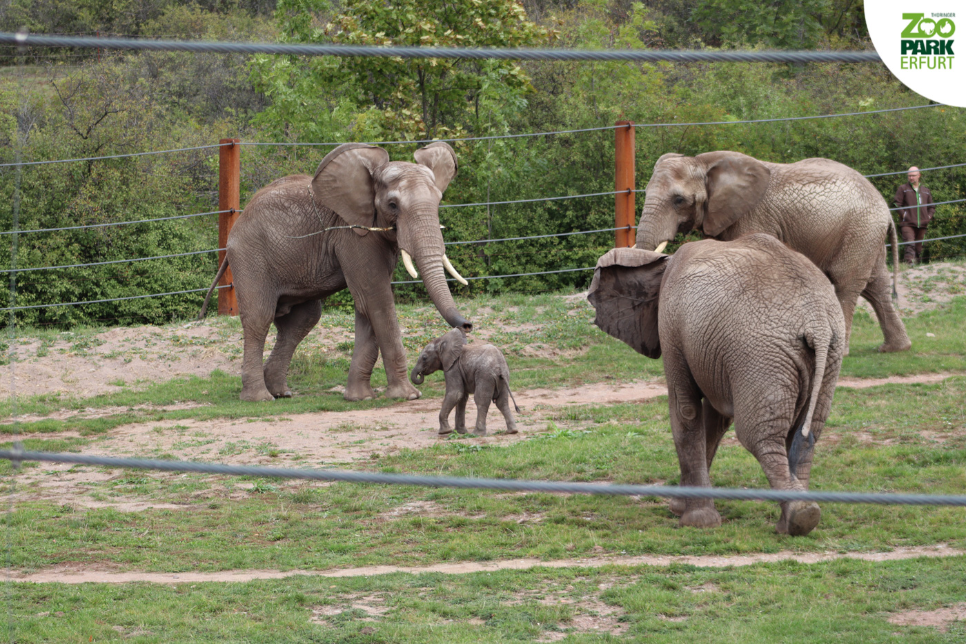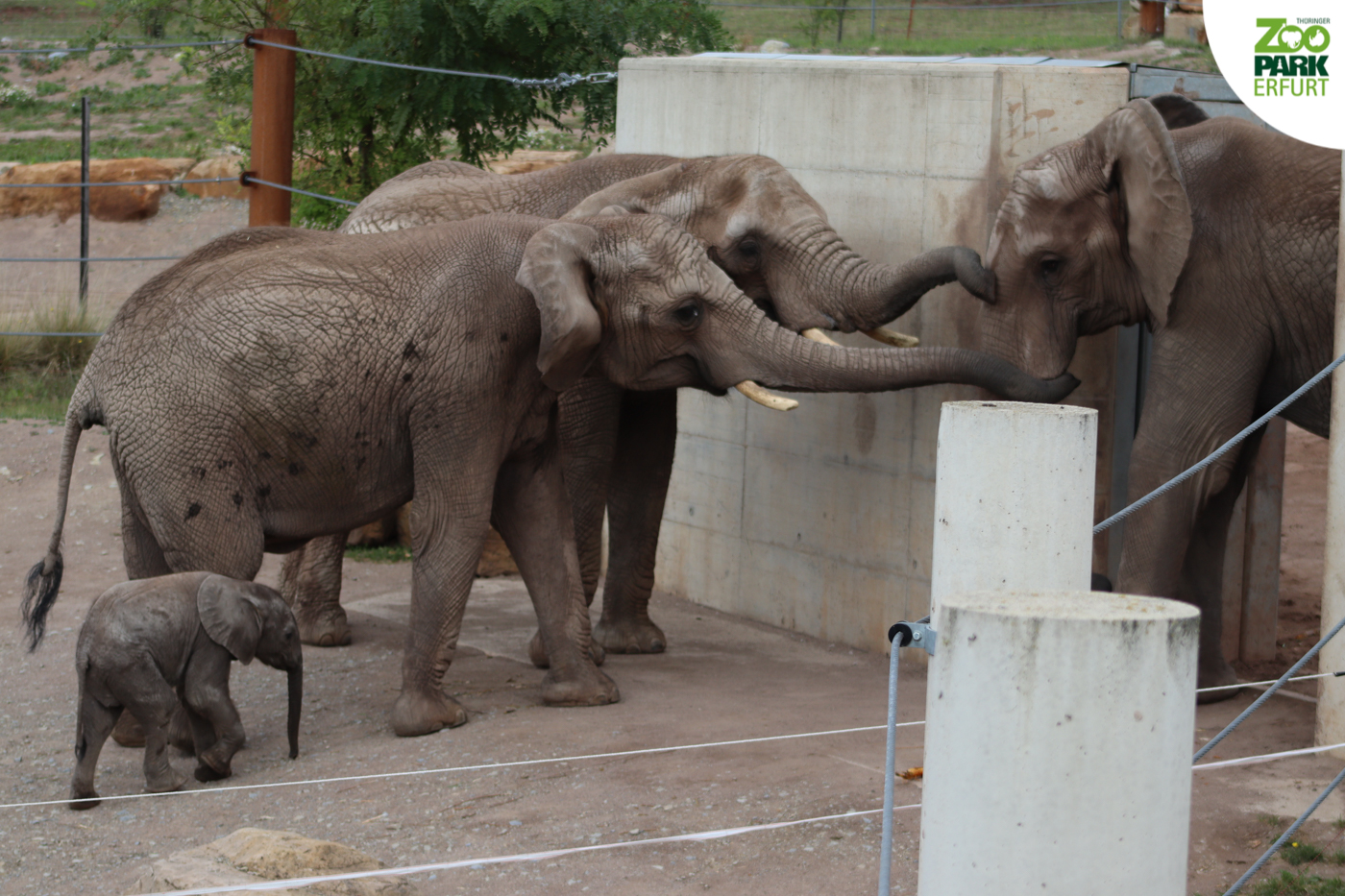 Bei seiner Geburt - nach einer Tragzeit von 626 Tagen - wog er 101 kg und maß 90 cm. Der nunmehr 15-jährige Kibo und die 16-jährige Chupa haben dem Thüringer Zoopark Erfurt, mit der nun zwei Monate "alten" Ayoka, das größte Geschenk in der über 60-jährigen Zooparkgeschichte bereitet.