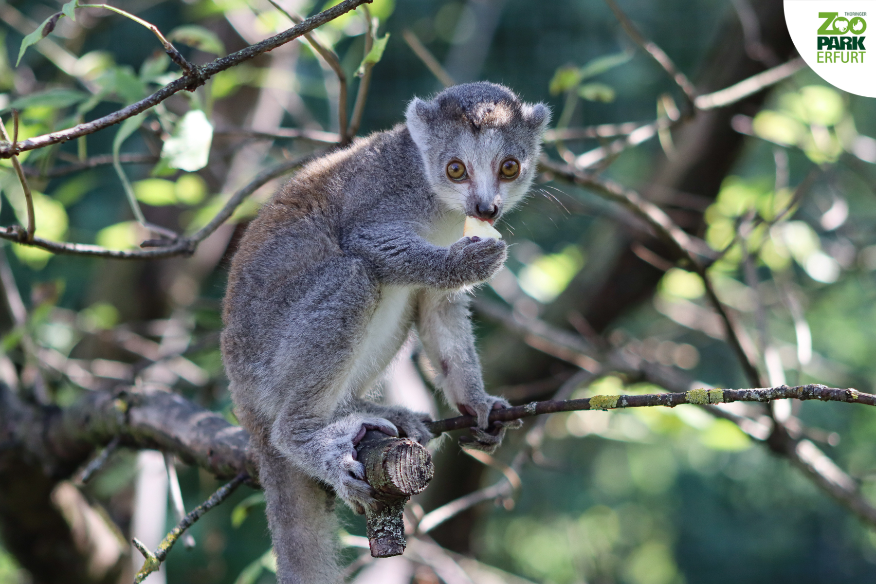 Zum Bespiel bei den Kronenmakis. Hier tragen die beiden Lemuren-Mamas „Holy“ und „Maholy“ ihre Jungtiere „Arya“ und „Milo“ ganz still und unauffällig mit sich herum. Nur wer ganz genau hinschaut, entdeckt die kleinen Äffchen. Da die beiden Mütter ihre Jungtiere sehr stark beschützen, können sie derzeit leider noch nicht gemeinsam in der Außenanlage gezeigt werden.