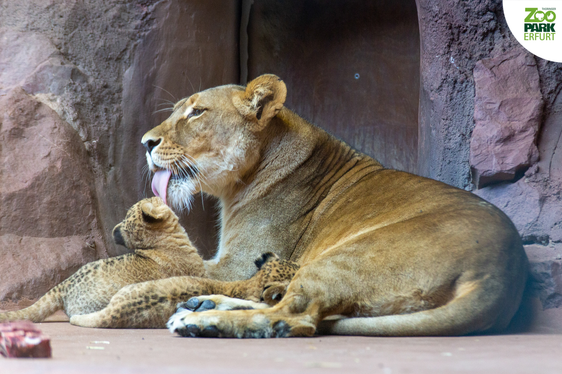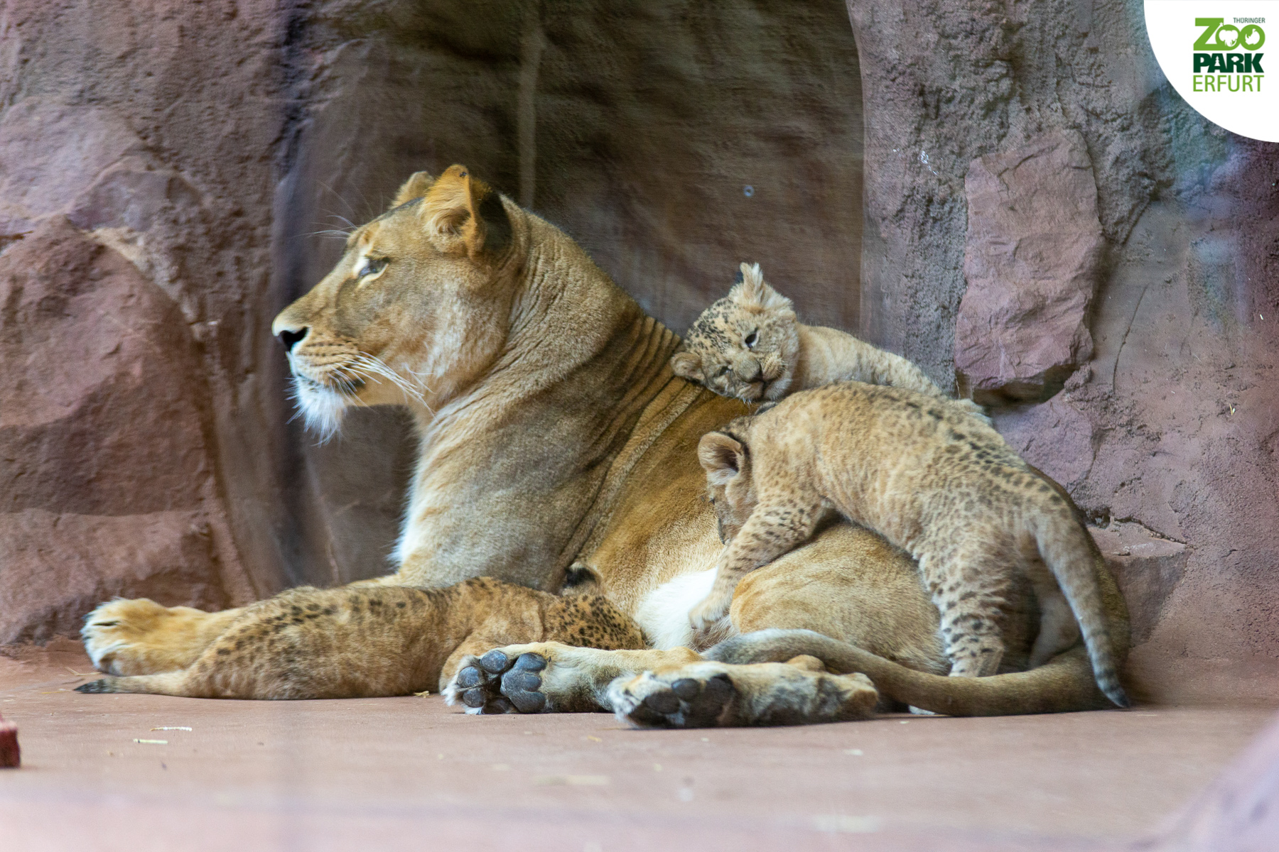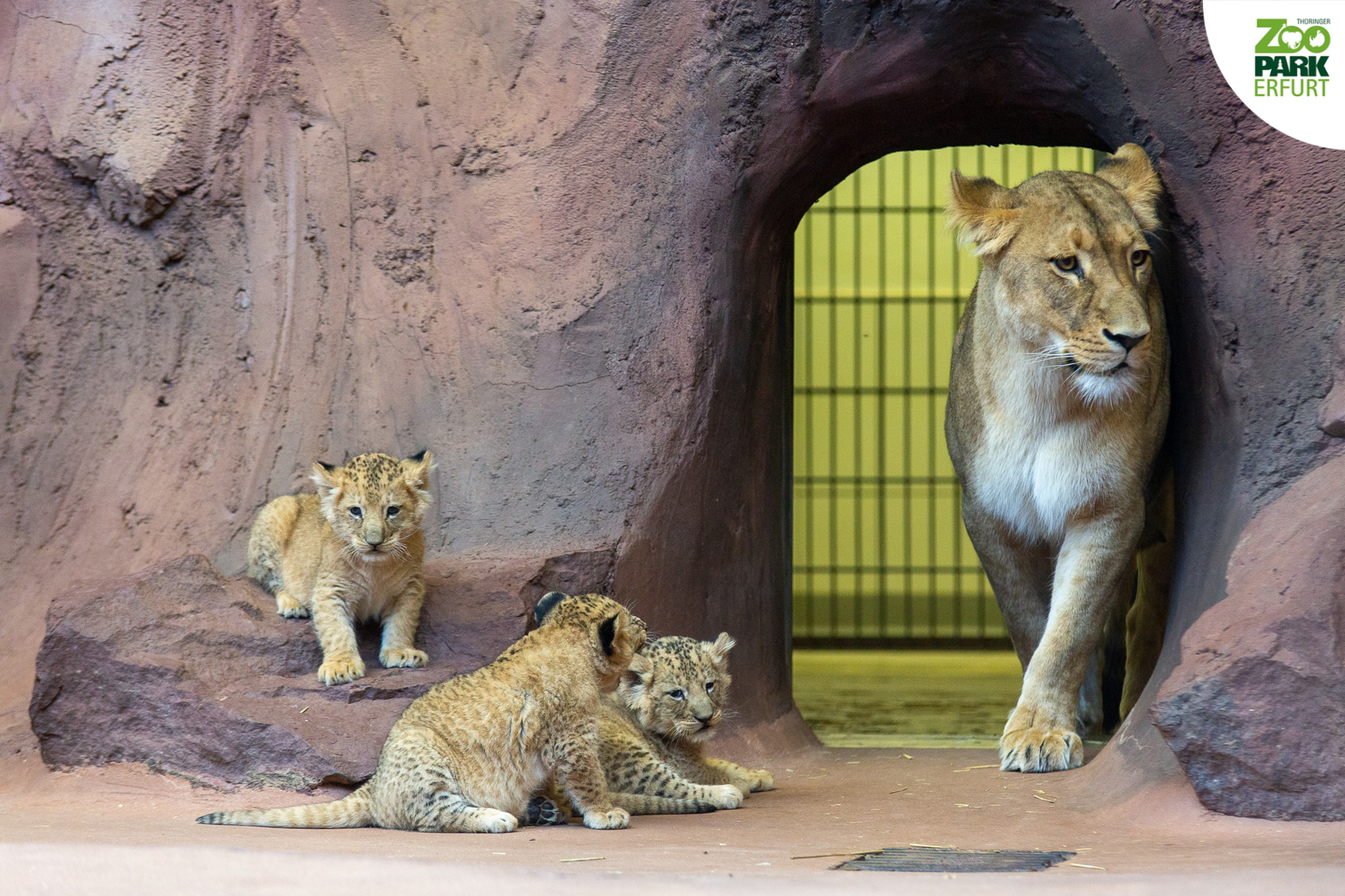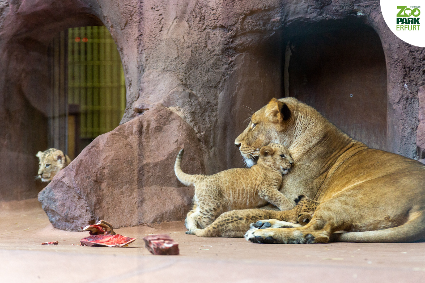 Die Jungtiere sind ab sofort im Löwenhaus zu sehen. Allerdings trägt Mutter Bastet ihre Kleinen auch immer wieder in einen geschützten, nicht einsehbaren, Bereich. Besonders bei großer Lautstärke, also psssssssst...