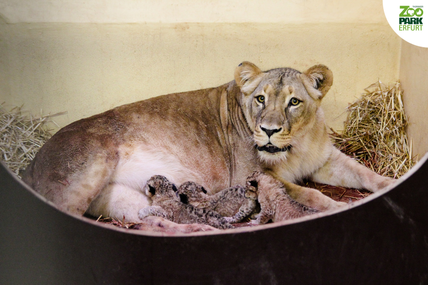 Nach der dramatischen Löwengeburt im letzten Jahr sind alle Mitarbeiter des Zooparks überglücklich. Zoodirektorin Sabine Merz freut sich besonders über den Nachwuchs: „Bastet ist eine super Mutter und wir alle hoffen, dass diesmal alles reibungslos verläuft. Die ersten Tage im Leben eines Neugeborenen sind immer kritisch, aber Bastet macht sich gut und verteidigt ihre Welpen selbst gegen Cheftierpflegerin Sabine Fuß. Das sind sehr gute Zeichen.“