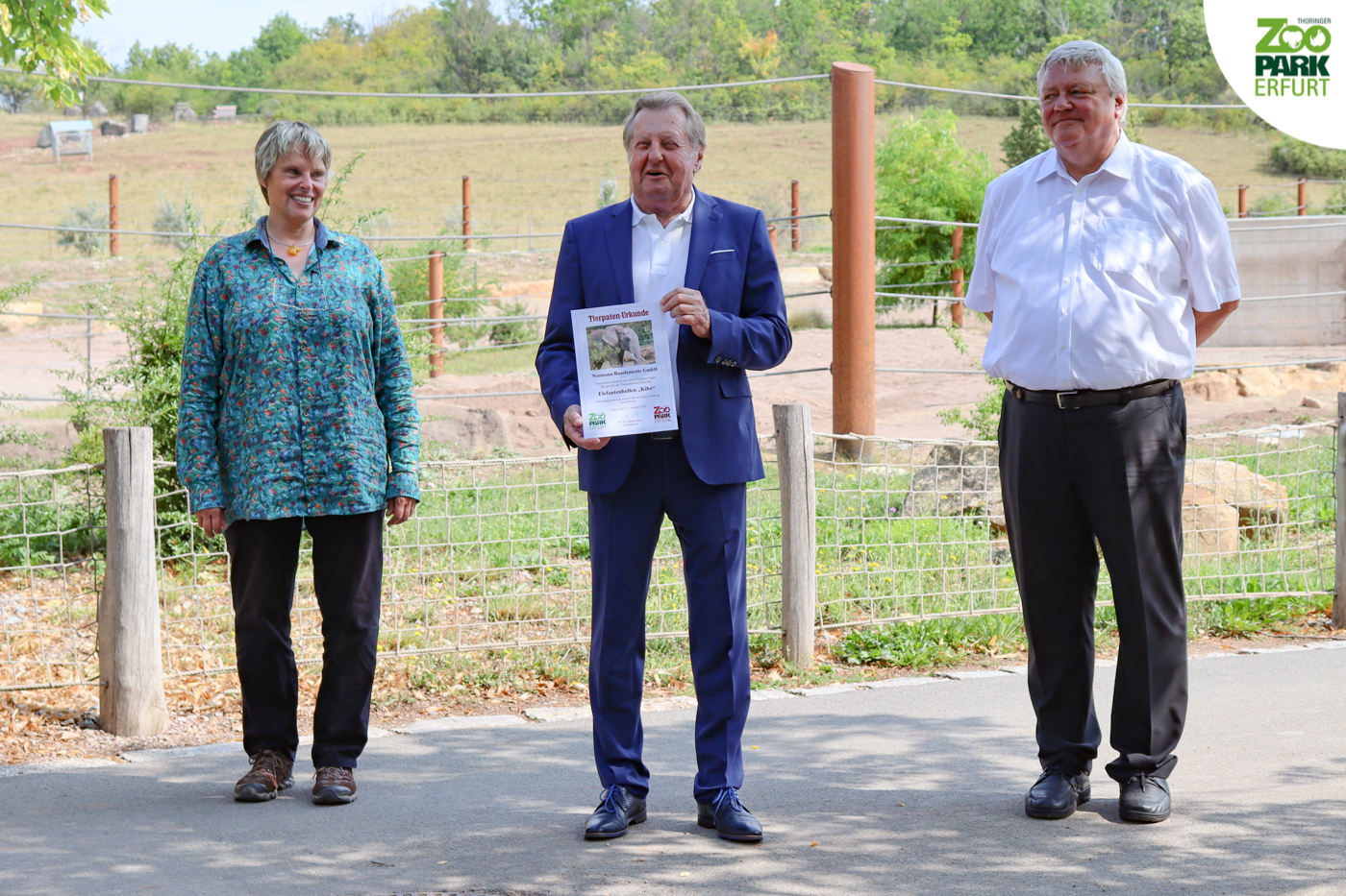 Großer Dank geht auch an Klaus Neumann. Dieser verlängerte im Rahmen der Pressekonferenz seine Patenschaft für Elefantenbulle Kibo um ein weiteres Jahr. Klasse!